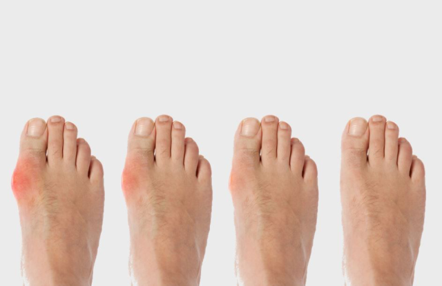 En esta deformidad, el hueso del dedo gordo (primer metatarsiano) se desvía hacia adentro, lo que provoca la formación de un juanete (bultito óseo) en la base del dedo.